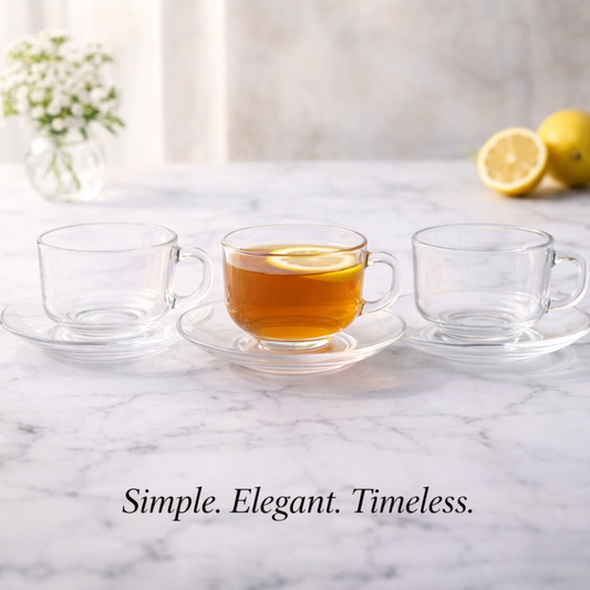 Enjoy your daily chai in style with this Premium Clear Glass Tea Cup Set. Designed for modern homes and office spaces, these transparent glass mugs enhance the rich color of your tea, coffee, or green tea. Crafted from high-quality heat-resistant glass, these cups are durable, lightweight, and comfortable to hold....