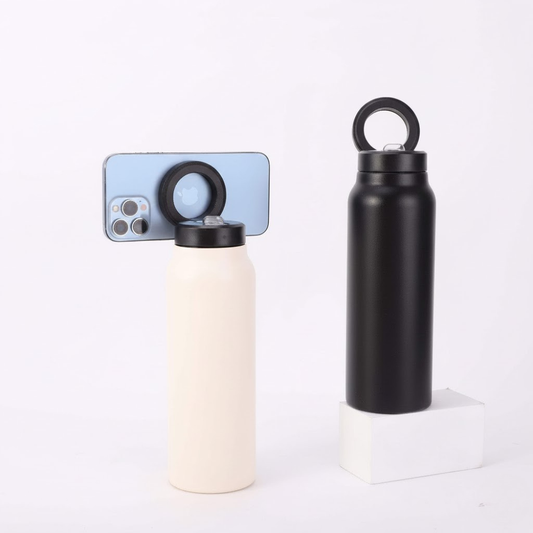Stay hydrated wherever you go with this premium stainless steel vacuum insulated water bottle with Mage safe, designed for modern, on-the-go lifestyles. Featuring a secure ring cap for easy carrying and an innovative phone-mount compatible lid, this bottle is ideal for travel, gym workouts, outdoor activities, cycling, hiking, and content...