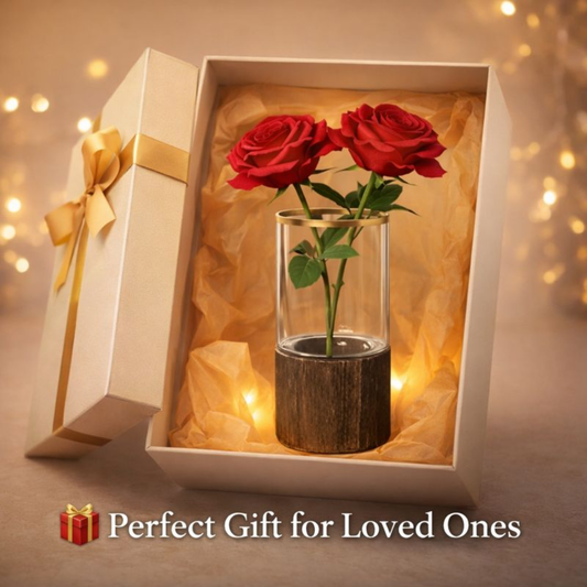 Bring timeless beauty to your space with this premium artificial red rose arrangement designed to look as elegant as a real flower without any maintenance. The realistic roses are placed inside a crystal-clear glass vase with a solid wooden base, giving it a modern and luxury décor look. Perfect for...