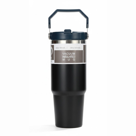 "Introducing the Glassozy Vacuum Insulated Travel Tumbler, the perfect companion for keeping your drinks hot or cold on the go. This durable Tumbler features a double-wall insulated stainless steel body and a comfortable carrying handle. With a large 30oz / 600mL capacity, it's ideal for your daily coffee, tea, or...