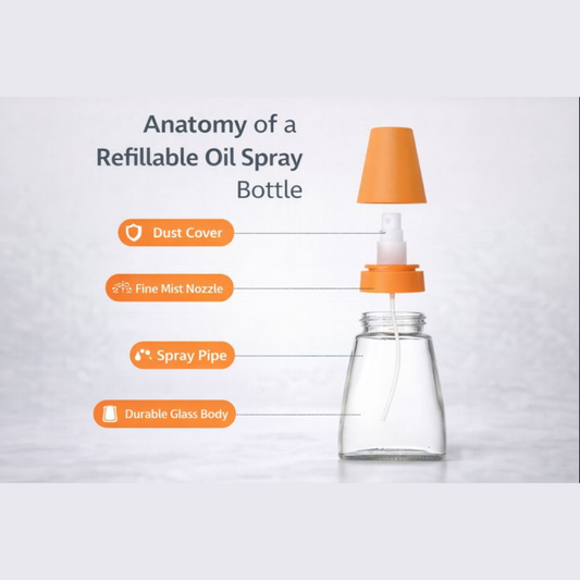 Cook healthier every day with this 180ML Refillable Oil Spray Bottle, designed to deliver a fine, even mist that helps you control oil usage and reduce calories. Made with a durable glass body and precision spray nozzle, it ensures consistent coverage for frying, baking, air frying, grilling, and salad dressing....