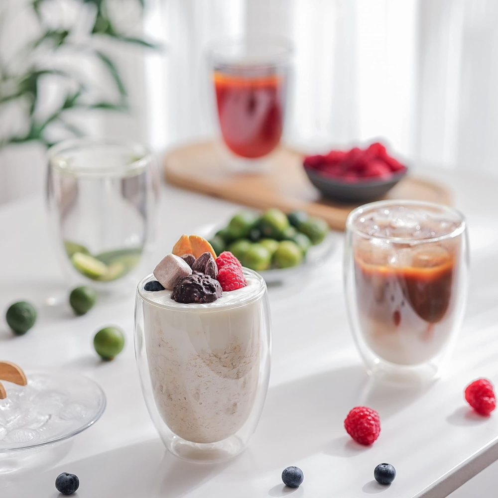 Sleek Aesthetic: The clear, double-layered design prevents condensation and provides a minimalist, modern look.