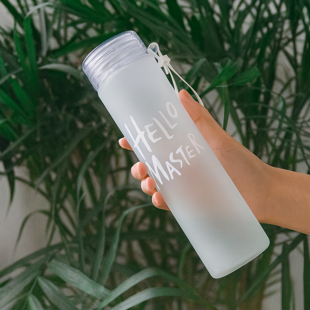Stay hydrated wherever life takes you with the “Hello Master” Frosted Glass Bottle — a perfect blend of style, sustainability, and convenience.