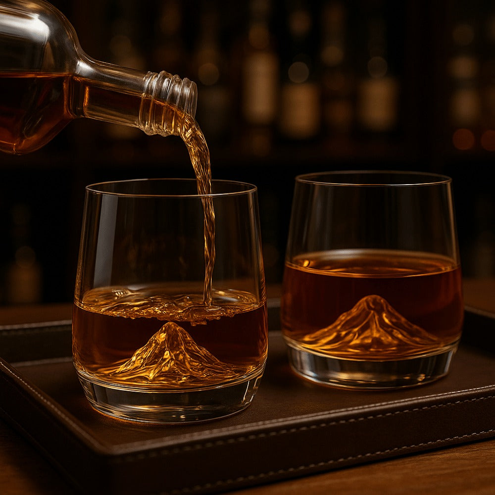 Bring your bar to life with this Set of 6 Color Mountain-Peak Glasses. Each tumbler features a sculpted 3D peak rising from the base to refract light and keep ice centered for slower dilution. The weighted, thick bottom delivers bar-grade stability, while lead-free glass showcases every hue—whisky amber, cocktail reds, fresh juices, and sparkling water. With six distinctive colors (purple, clear, red, amber, green, blue), guests instantly recognize their glass, making this set as practical as it is striking.